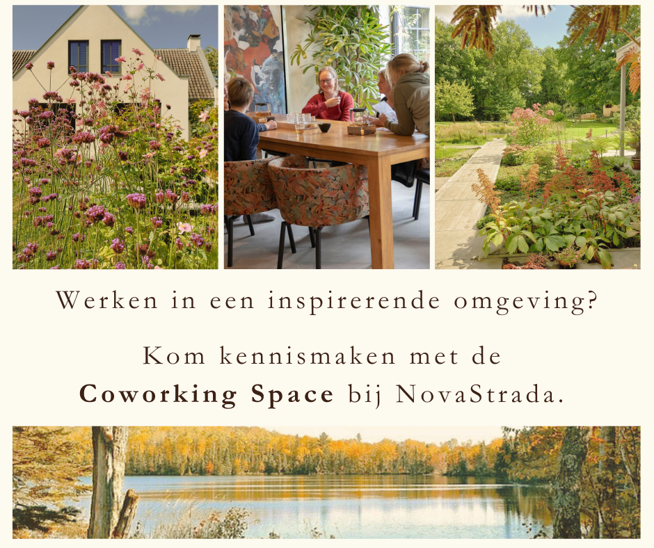 Zoek je een fijne werkplek buiten huis, waar je ongestoord kunt focussen en nieuwe energie opdoet? In de lichte ontvangstruimte van NovaStrada hebben we een kleinschalige coworkingplek gecreëerd, speciaal voor vrouwelijke ondernemers die houden van rust, natuur en verbinding.